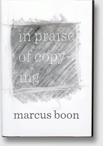 Marcus Boon’s recent book, In Praise Of Copying (Harvard University Press, 2010), is a timely argument in favor of our freedom to freely copy one another in the name of healthy creativity. Boon, a professor of literature at York University (as well as a DJ and contributor to Wire magazine) notes that the word copy derives from the Latin “copia” which means “abundance, plenty, multitude” (41). Copying is everywhere, and Boon eloquently argues that not only is copying an integral part of being human, but that “we could not be human without copying, and that we can and should celebrate this aspect of ourselves, in full awareness of our situation” (7).
