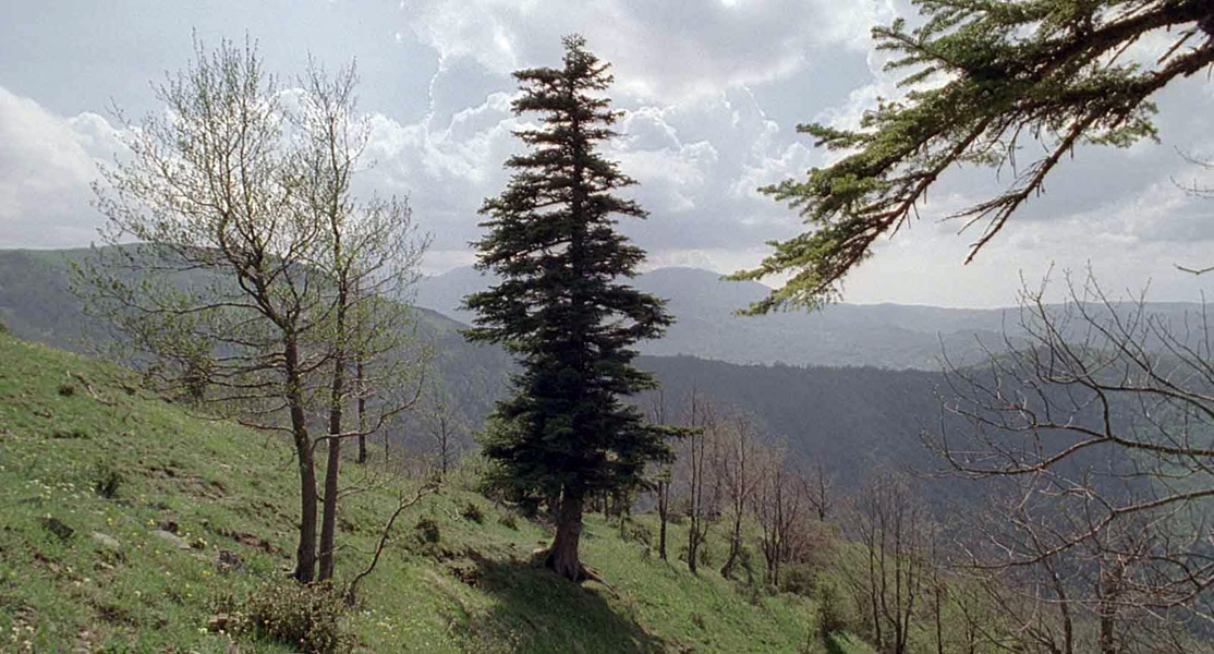After the man dies he is burned to ash and in the scene immediately following we see the birth of a baby goat. Now we follow this goat as he learns how to walk, be in the world and follow the pack. But soon he gets separated from the others, lost on a mountainside, alone. We hear the anguished cries of his small soul alone in an indifferent universe and it’s moving to listen to because the goat has become for us a synecdoche for a wider world of suffering that happens every day out of our earshot. Not knowing where to go, the goat finds refuge under a lone pine tree whose shelter momentarily puts life’s big questions on hold. Set against a changing sky, the lone pine becomes a kind of clock, bringing us through the summer, autumn and winter seasons. Listening and watching the wind blow through the pine’s branches we move along with its slow rhythm.