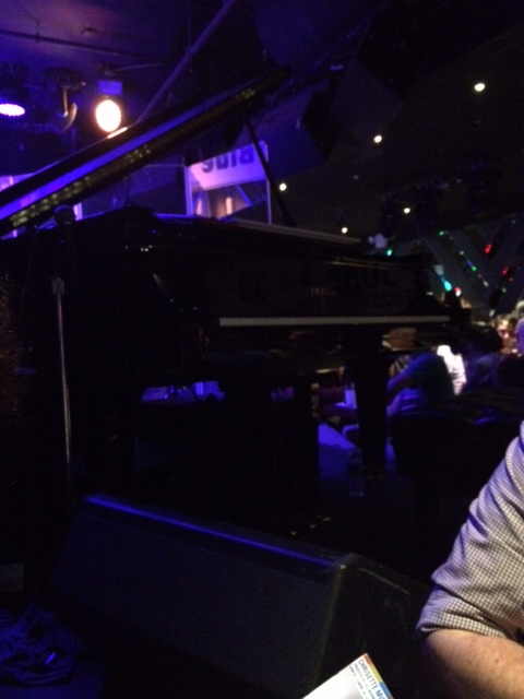 I sat behind Hiromi and couldn’t see her two bandmates–until I realized that if I looked towards the mirrored far wall across the room I could see the head of Jackson and Phillips’ hands–but nothing else, obscured as the drummer was by his giant cymbals. Not bad, but who knew that seeing makes listening to live music that much better? I wanted to see what the musicians were thinking with their faces. So it goes sometimes.