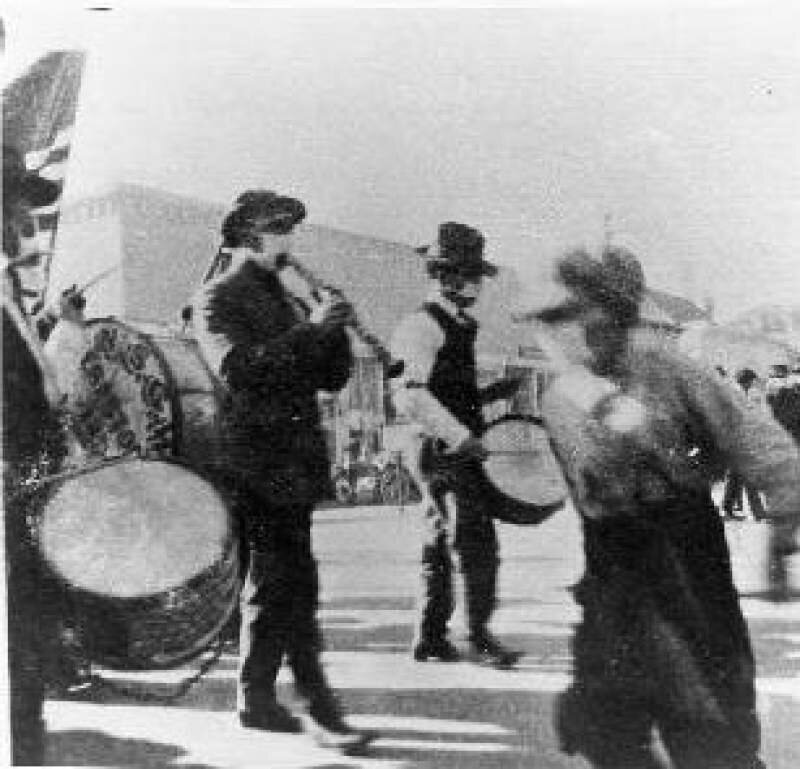 Art About Music: Photo Of The N.S.G.W. Drum Corps (wearing flu masks) Celebrating The End Of WWI In Sebastopol, CA (1918)
