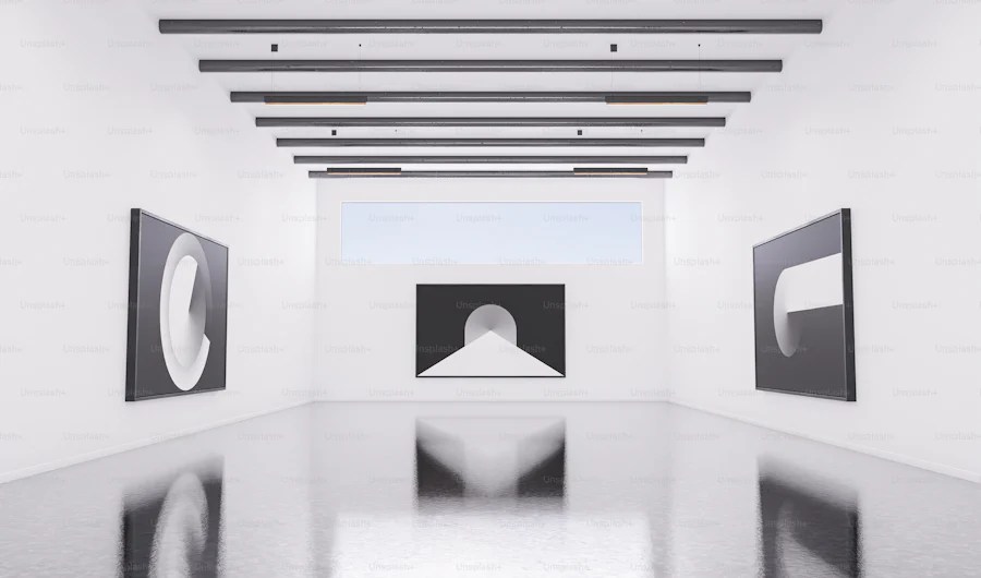In a large gallery with white walls and hardwood floors, heard from the end of the room. A pad sound plays loud and long chord washes, while the sub bass underneath moves away from root notes. The sound overwhelms the room and you. It’s hard to tell if the music is repeating or not.