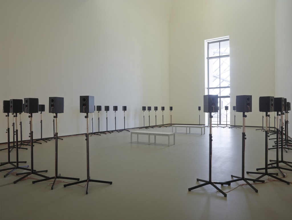 In a surround-speakered space, heard from its middle. A mix of nature soundscapes and synthetic textures. Atmospheric field recordings loop in different lengths like slow breaking waves, while fluttering hi hat and vocal chop samples mark machine time. It’s the sound of two worlds colliding.