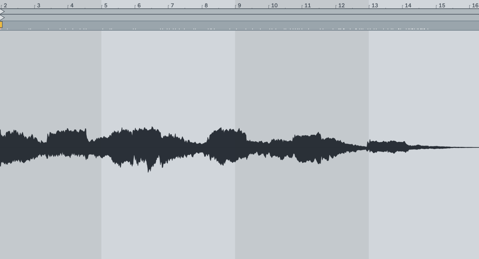 If you compose with MIDI (as almost all producers do), it can be beneficial to bounce MIDI tracks to audio sooner rather than later to open production possibilities. Since audio is captured sound rather than MIDI instructions for triggering it, working directly with audio waveforms is the closest the composer gets to touching sound as it unfolds over time. As producer Aphex Twin realized after having noticed the similarities between the waveforms of bird song and sine wave samples, ”all sounds break down into really simple things.” Working directly with waveforms is production’s breaking down technique that allows us to explore sound as malleable-morphable material that can be shaped in infinite ways. In sum, play with audio tracks as simple things: re-pitch them into distant registers, granulize and stretch them out into drones, find their perfect loops, chop them into percussive bits, or use them as input for processing chains whose strange outputs will be input for even stranger audio. Working directly with waveforms is a tactile way for the composer to maintain a sense of touch in production so that the music’s elements are crafted, shaped, and adjusted thoughtfully and just so.